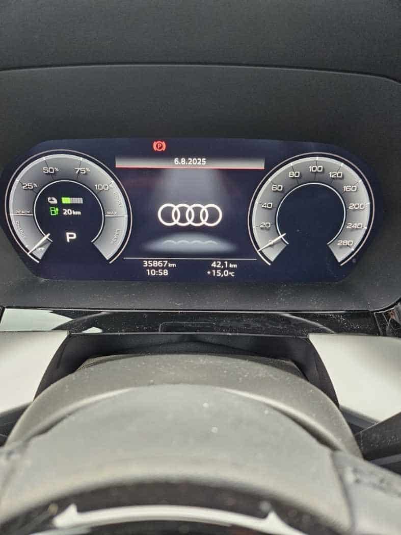 2 ports de charge USB AR | | 6 HP (passifs) | | Accoudoir central coulissant en longueur, avec inclinaison réglable | | Airbags latéraux à l’AV et système d’airbags de tête | | Alerte de sortie de voie | | Appel d’urgence Audi connect | | Applications décoratives en aluminium Spectre foncé | | Appui lombaire à 4 axes pour les sièges AV : réglages électrique, horizontal et vertical | | Audi Connect Appel d’urgence | | Audi Connect Navigation et Divertissement | | Audi Connect Navigation et Divertissement Plus | | Audi Drive Select | | Audi park assist : cherche à l’aide de capteurs à ultrasons les places de stationnement (bataille et créneau) appropriées le long de la chaussée, calcule le créneau idéal et gère le braquage automatiquementAudi phone box light | | Audi pre sense front | | Audi smartphone interface | | Audi sound system : 10 HP incluant un HP central et un subwoofer, amplificateur à 6 canaux avec une puissance totale de 180 watts | | Audi Virtual Cockpit plus | | Banquette AR variable, 40:20:40, avec porte-gobelet dans l’accoudoir de la place centrale | | Boîtiers de rétroviseurs extérieurs dans la couleur de la carrosserie | | Câble de recharge HH Type E (8 A) | | Caméra de recul | | Ciel de pavillon en tissu | | Clé confort incluant déverrouillage du coffre par capteur (sans safelock) – Accès et démarrage du véhicule mains libres (keyless access) – Déverrouillage du hayon via la touche « coffre » de la télécommande ou en simulant un | | Climatisation automatique confort 2 zones | | Combiné d’instruments entièrement numérique 12,3″ | | Commande de désactivation de l’airbag passager AV |